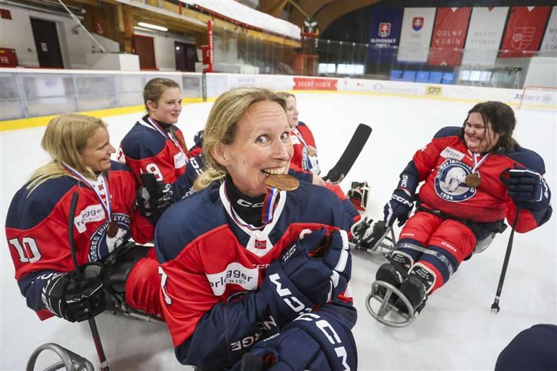 Karen Reite laughs while reflecting on the first-ever World Championship in women’s Para ice hockey. Players from the US, Canada, the UK, Australia, Norway and a world team (Team World) recently spent ten days in Slovakia. The Norwegians finished third.